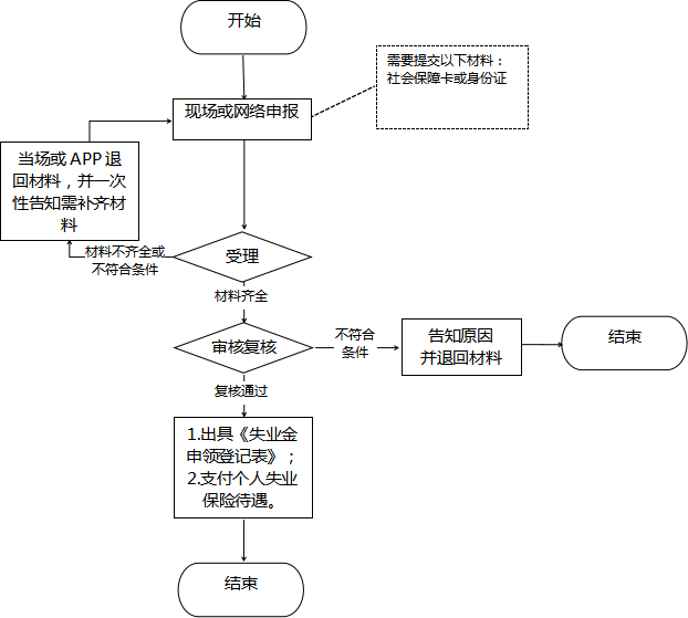 审批结果: | 1.出具《失业金申领登记表》 2.支付个人失业保险待遇 | ||